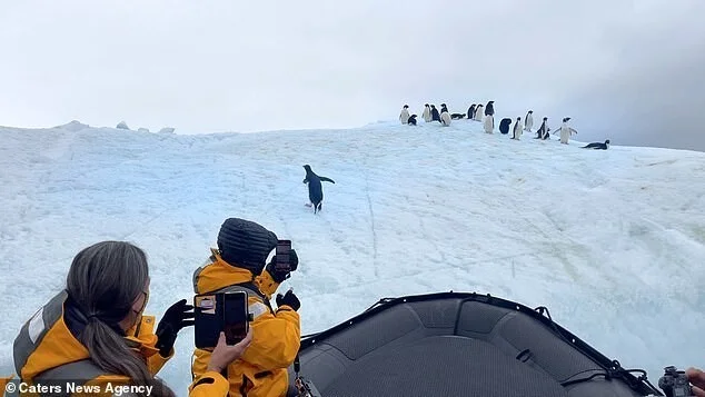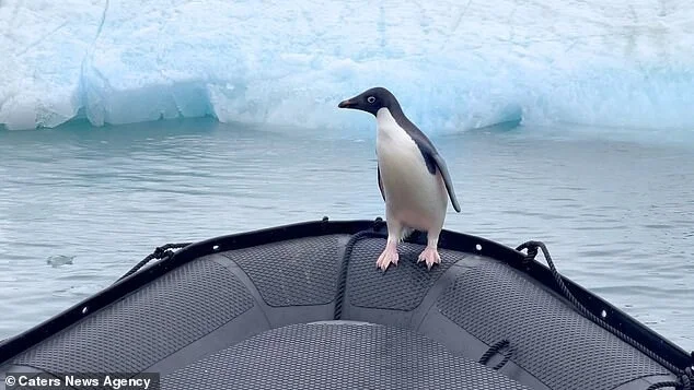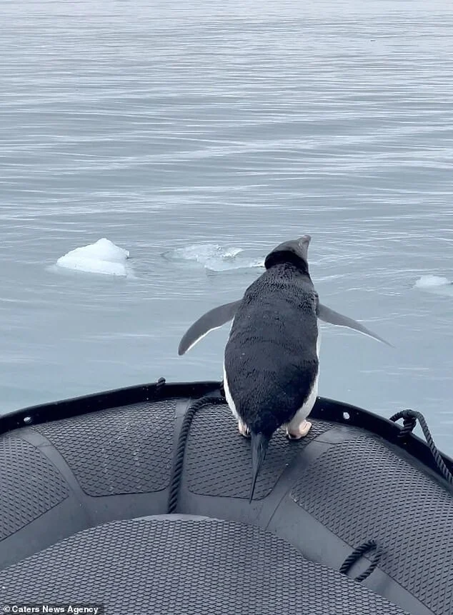 На представленные здесь кадры попал момент, когда пингвин, спасаясь от преследования, "поймал попутку" — он запрыгнул на борт лодки, и лодка подплыла к ближайшему айсбергу, чтобы высадить пингвина на сушу.